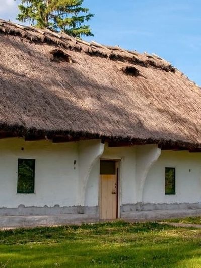 This Ukrainian Pioneer Home was built as a single-story dwelling in a rectangular shape out of logs and has white plaster applied to the outside for aesthetic and climate protection purposes. The roof has a very steep pitch covered by thatch with a chimney located in the centre of the room to produce heat evenly through out the house. This is a very beautiful and distinct example of homes people would see around the Ukrainian colony back in the early 1900's.